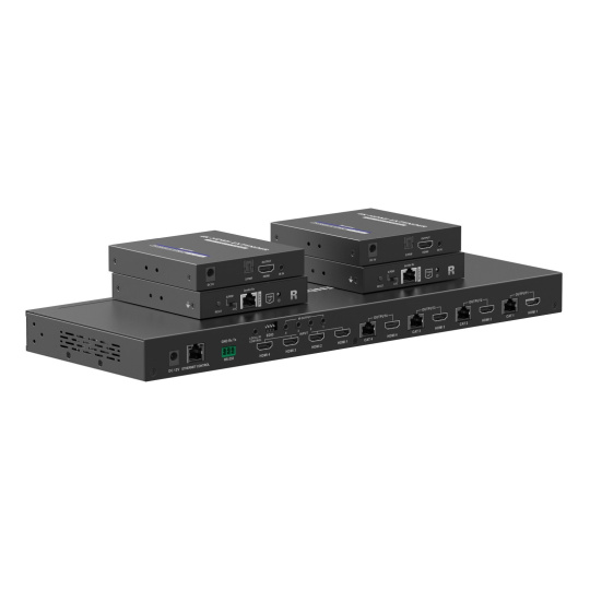 Umožní prepínať a prepojiť štyri zdroje HDMI signálu na 4 HDMI zobrazovacie zariadenia, monitory na veľkú vzdialenosť až 70m pomocou UTP kábla a navyše 4 lokálne monitory