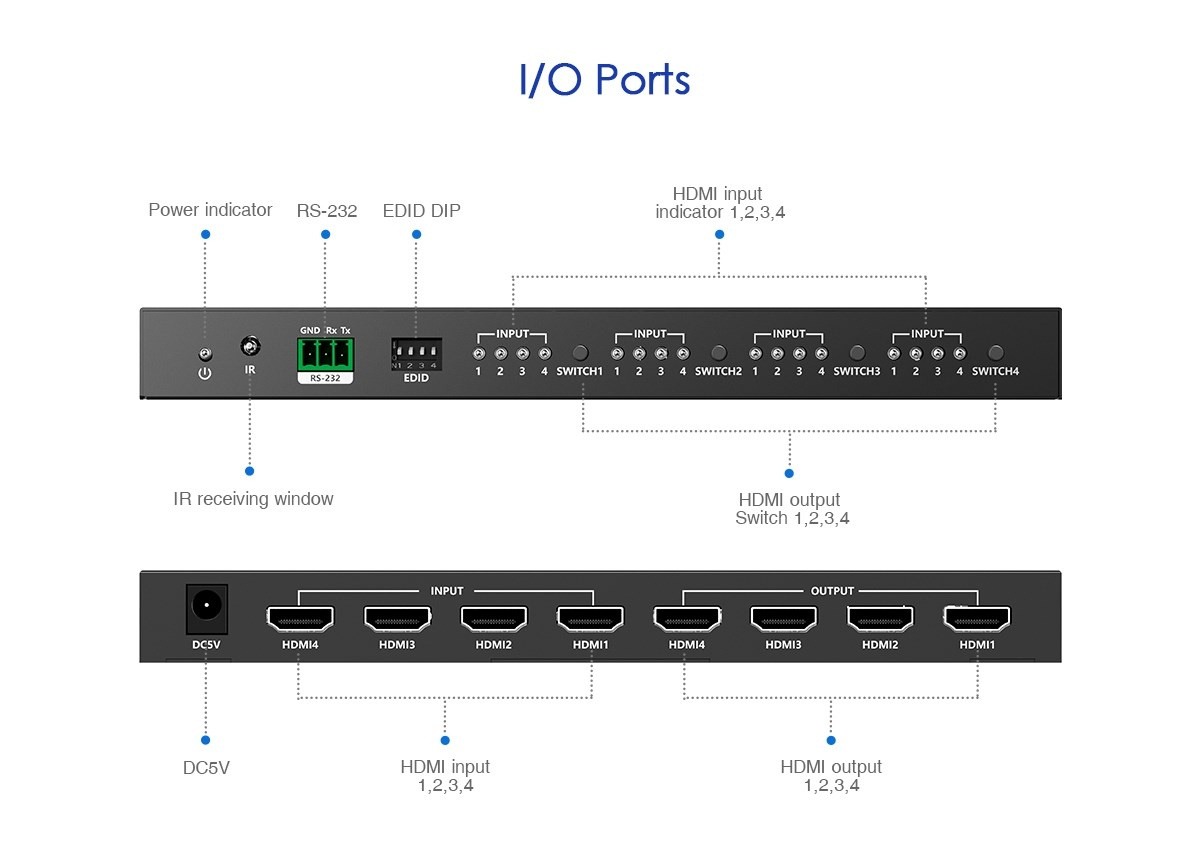Umožní prepínať a prepojiť štyri zdroje HDMI signálu na 4 HDMI zobrazovače, monitory.