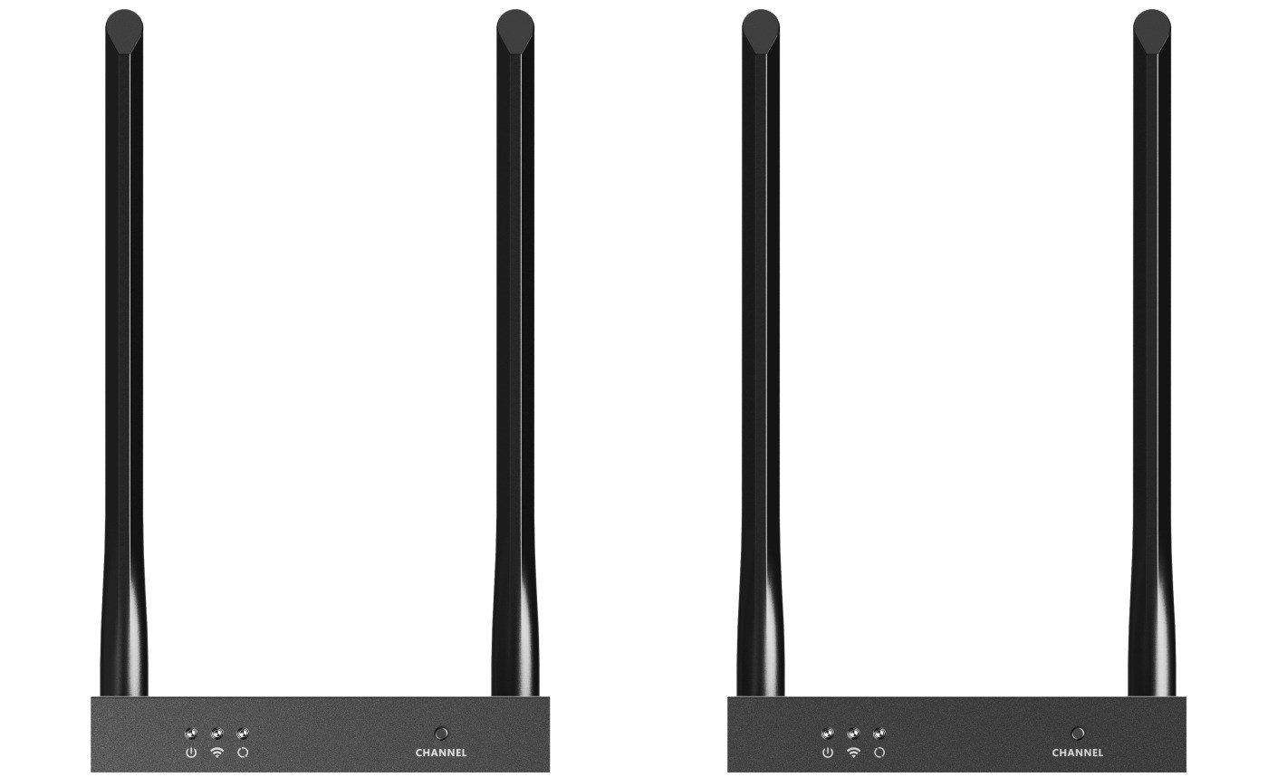 - Vysielač aj prijímač majú tlačidlo kanál, pri stlačení sa zmení vysielacia frekvencia, čo umožňuje funkciu viacerých bezdrôtových zariadení súčasne. Podporuje SSID párovanie