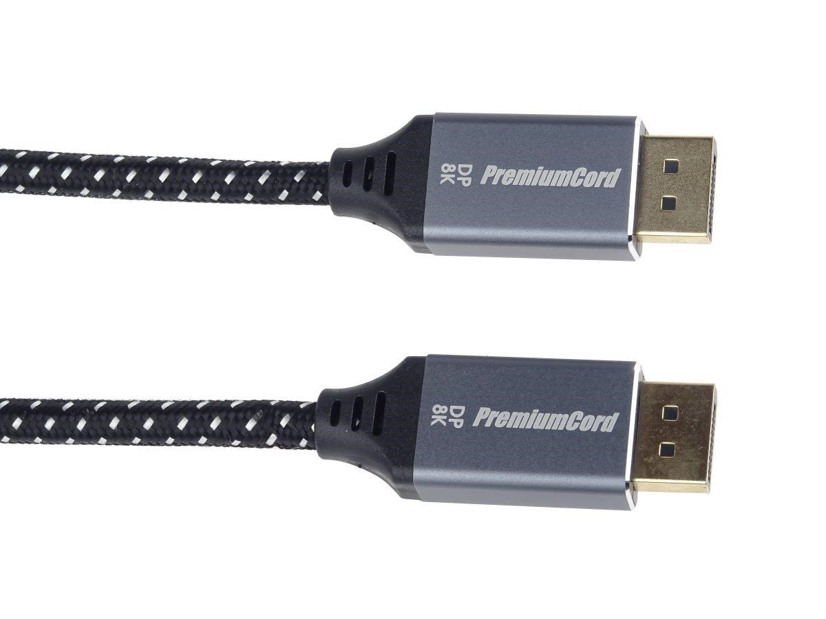 PremiumCord DisplayPort 1.4 pripojovacie káble M/M pre rozlíšenie 8K, kovové krytky a pozlátené konektory, 1 m