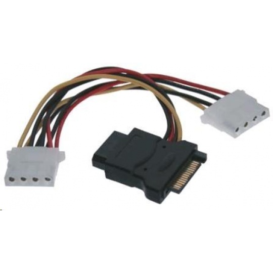 Napájací Y kábel Serial ATA na 3x 5,25" F 16 cm HDD - pripája sa k napájaciemu konektoru SATA zdroja napájania a redukuje kábel na 3 x 5 káblov.25" F, t. j. ak vám chýbajú klasické 5,25" konektory, táto redukcia vám poskytne 3x 5,25" F pre staršie disky a iné zariadenia - pre vysokorýchlostné HDD, CD, ... - cca 16 cm - Y kábel..
