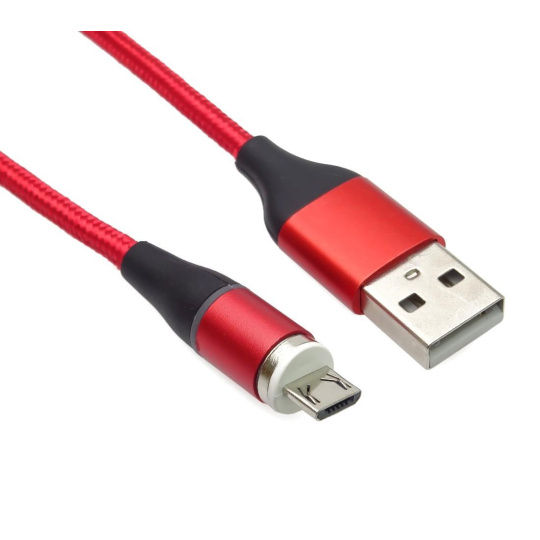PremiumCord Magnetický micro USB a USB-C nabíjací a dátový kôbel 1m, pre prúd až 3A, červený