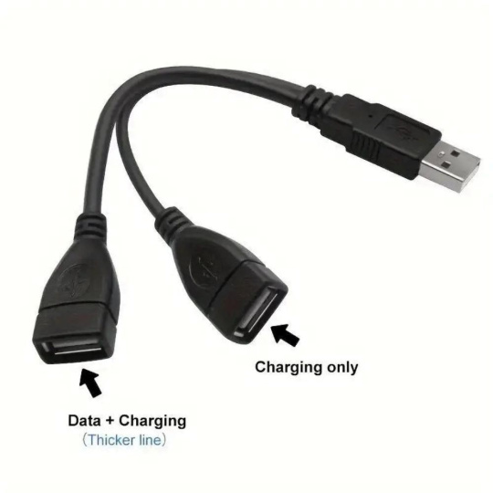 - Y kábel slúži na pripojenie dvoch USB mobilných telefónov alebo USB zariadení do USB portu, obe môžu byť súčasne nabíjané alebo napájané. Súčasne jedno zariadenie môže prenášať dáta.