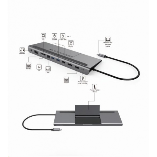 PremiumCord USB-C Full Size MST Dock Station so stojanom na telefón