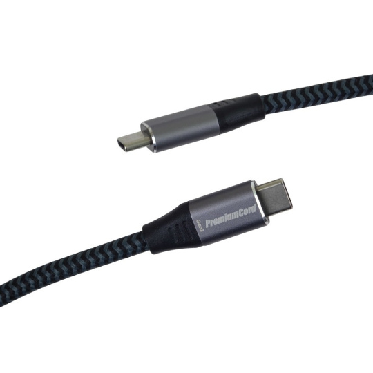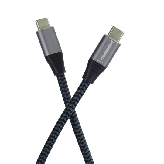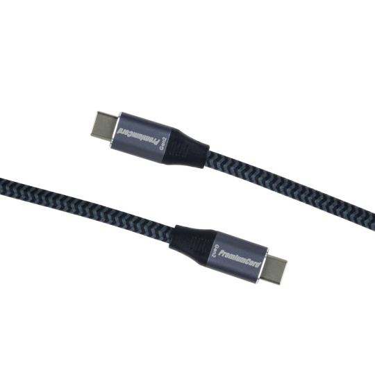 PremiumCord USB-C kábel ( USB 3.2 GEN 2x2, 5A, 100W, 20Gbit/s ) hliníkové krytky konektorov, bavlnený oplet, 3m