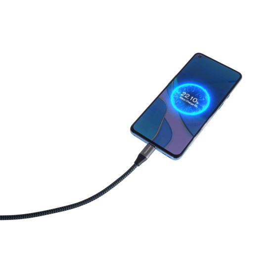 - Kábel opletený bavlneným poťahom, ktorý je príjemný na dotyk a manipuláciu