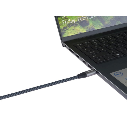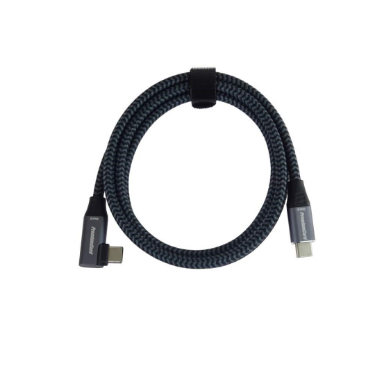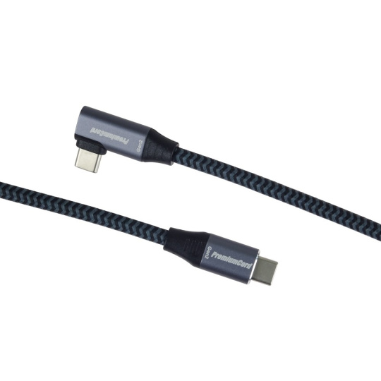 PremiumCord USB-C zahnutý 90° kábel ( USB 3.2 GEN 2x2, 5A, 100W, 20Gbit/s ) hliníkové krytky konektorov, bavlnené opletenie, 3m
