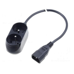 Prodlužovací přívod 2x230V CEE7/5 pro připojení do UPS s konektory IEC 320-C14. Počet výstupních zásuvek: 2 Délka kabelu: 30cm Maximální napětí: 250V Maximální proud: 10A., ,