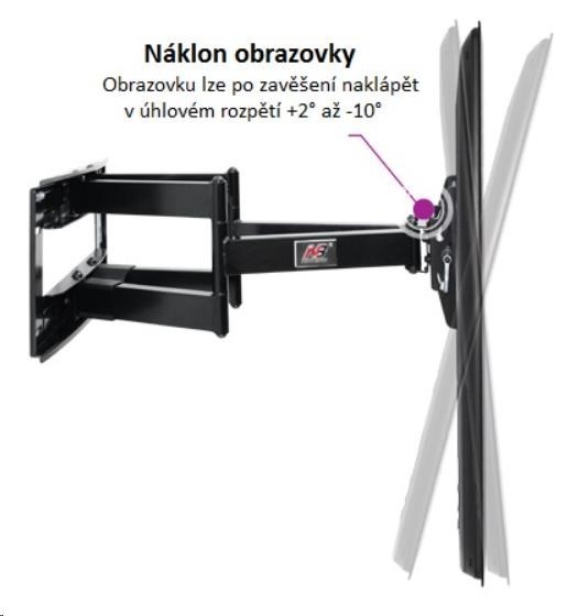 Otočný a sklopný držák na LCD, LED a plazmové Tv největších rozměrů 50" až 90" Cenová bomba mezi držáky na velké televize - špičkový držák unikátních vlastností za špičkovou cenu. Držák unese i ty největší televize a přitom si zachovává výbornou nastavitelnost - otáčení, sklápění, změna vzdálenosti. Součástí je i systém vedení kabeláže. Držák na největší televizory 50 až 90 palců - nosnost 90,7kg, otočný do stran, sklopný, délkově nastavitelný NB SP5 / drzakyastolky.cz Technické údaje: •nosnost 90,7kg •VESA standart 200x200 až 800x500 •doporučujeme na televize s úhlopříčkami 50" až 90" •náklon Tv +5° až -15° •natočení do stran +75° až -75° •vzdálenost od zdi 116mm až 708mm •systém vedení kabeláže •korekce roviny Tv •vynikající konstrukce •bezkonkurenční bezpečnost •snadné polohování obrazovky •záruka 5 let Držák je dodáván včetně hmoždinek a vrutů na montáž držáku na zeď a univerzální sady šroubů pro zavěšení televizoru na držák. Držák podporuje VESA standarty: •VESA 200x200 •VESA 300x300 •VESA 400x200 •VESA 400x300 •VESA 400x400 •VESA 600x400 •VESA 800x400 •VESA 800x500 •všechny ostatní VESA standarty s hodnotou 400-800 x 200-500 Držák NB SP5 je vhodný pro zavěšení všech televizorů a monitorů, které mají hmotnost do 90,7kg a podporují VESA standart dle tabulky výše. Uváděná doporučená úhlopříčka není podstatná, pouze informativní, jak velké obrazovky by měli hmotnost i VESA standart splňovat. Držák proto může být vhodný i pro ještě větší úhlopříčky jak 90 palců..