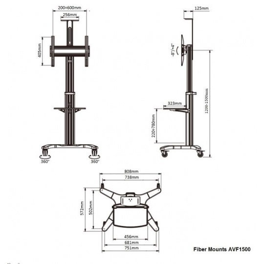 Technické údaje: •maximální zatížení 36,4kg •podporuje VESA standarty 200x100 až 600x400 •na Tv 32" až 60" •min. výška stojanu 1200mm •max. výška stojanu 1500mm •náklon obrazovky +4° až -8° •police na příslušenství - součást balení •police na kameru - součást balení •profesionální konstrukce - top kvalita •pojezdová kolečka s brzdou •dokonalá stabilita •materiál hliník •barevné provedení černé •záruka 5 let Televizní stojan AVF1500 podporuje VESA standardy: •VESA 200x100 •VESA 200x200 •VESA 300x200 •VESA 300x300 •VESA 400x200 •VESA 400x300 •VESA 400x400 •VESA 600x400.