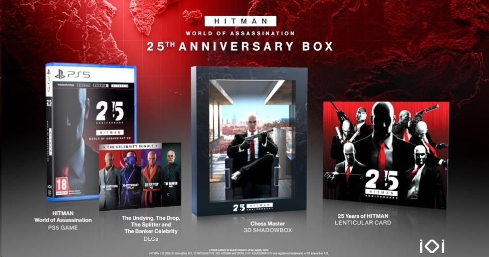 Oslavte 25 rokov hry HITMAN vďaka výročnímu krabicovému vydaniu hry HITMAN World of Assassination, kde nájdete exkluzívne zberateľské predmety: