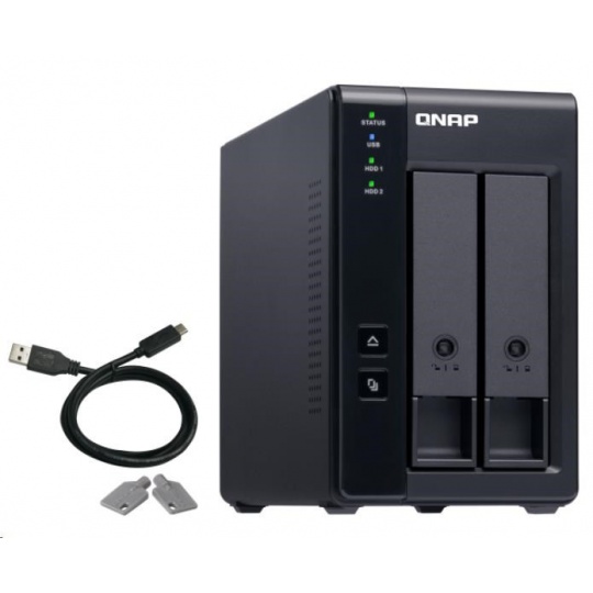 | Držiak disku | 2 x 3,5 palcový Systém je dodávaný bez HDD. Pre zoznam kompatibilných HDD navštívte https://www.qnap.com/compatibility/ |
