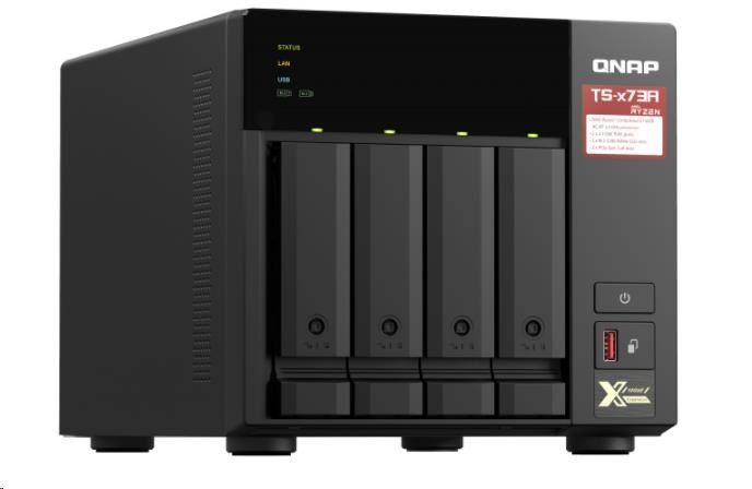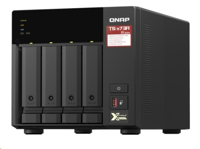Disponuje štvorjadrovým procesorom AMD Ryzen™ rady V1000 V1500B, ktorý poskytuje vysoký výkon systému vďaka až štyrom jadrám / 8 vláknam a Turbo Core až 2,2 GHz. Zariadenie TS-473A má dva porty 2,5GbE RJ45 a dva sloty PCIe Gen 3, aby ste mohli flexibilne nasadiť siete 5GbE/10GbE. Dva sloty M.2 NVMe SSD pre technológiu Qtier a SSD Cache umožňujú neustálu optimalizáciu úložiska. Zariadenie TS-473A podporuje systémy QTS a QuTS hero, čo používateľom umožňuje pružne prepínať operačný systém podľa ich požiadaviek.