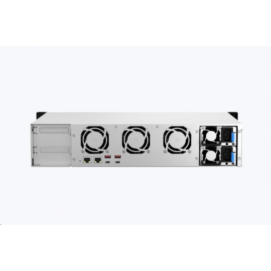 NAS s malou hĺbkou pre montáž do racku s duálnym pripojením 2,5GbE. Štyrjadrický procesor AMD Ryzen™ s podporou 10/25GbE alebo M.2 SSD cache s možnosťou rozšírenia PCIe pre virtuálne aplikácie (Podpora operačných systémov QTS alebo QuTS hero)
