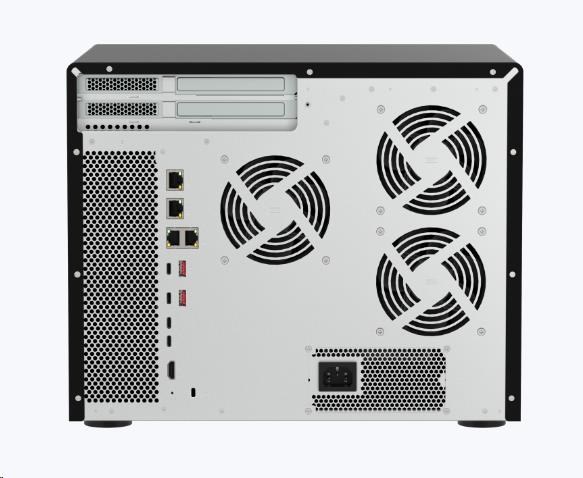 - štandardne 2,5/10GbE, možnosť rozšírenia na 100GbE: Rozšírte pomocou PCIe kariet na 25/100GbE, ideálne pre virtualizáciu, intenzívny prístup k súborom, prenos médií a rýchle zálohovanie/obnovu.