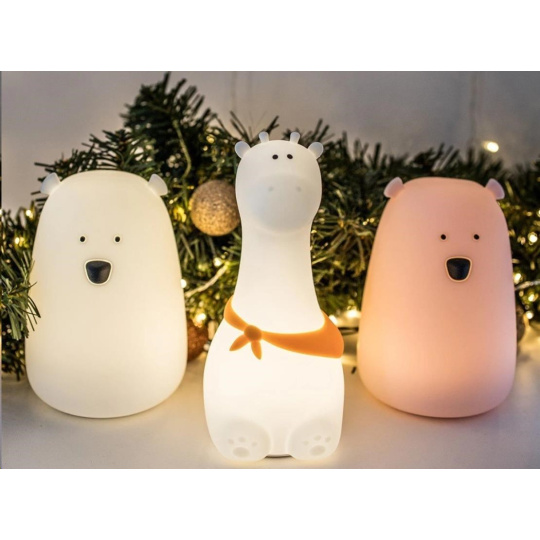 je vyrobená z príjemného a mäkkého silikónu. Vďaka možnosti výberu zo troch farebných prevedení je skvelou voľbou ako do dievčenskej, tak chlapčenskej izbičky. Tento rozkošný kamarát bude svojím príjemným svetlom robiť vašim deťom spoločnosť pri večernom zaspávaní, ale pokojne aj chvíľu po ňom. V prípade, že medvedíka zabudnete vypnúť, sám sa po 2 hodinách svietenia automaticky vypne. Deti si svietiaceho medvedíka tak obľúbia, že ho budú chcieť brať so sebou aj na dovolenku či víkendový pobyt. Lampička je určená na svietenie, nie je hračkou.