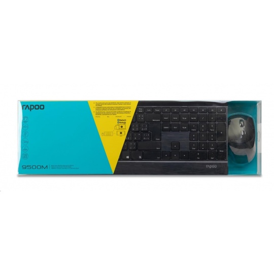 Táto ultratenká súprava myši a klávesnice ponúka prvotriedne materiály so štýlovým dizajnom a pohodlným používaním. Telo klávesnice vyrobené z nehrdzavejúcej ocele a zliatiny hliníka je nielen pevné a odolné, ale dodáva stolu aj určitý štýl. Model 9500M je nielen dizajnovo, ale aj funkčne pokročilý. Ponúka technológiu viacrežimového pripojenia Rapoo - prostredníctvom spoľahlivého 2,4 GHz bezdrôtového vysielača, Bluetooth 3.0 a 4.1 - umožňuje súčasné pripojenie a prepínanie viacerých zariadení (s automatickým párovaním). Myš v tejto súprave je vybavená plne nastaviteľným vysoko výkonným optickým senzorom s rozlíšením 600 až 1600 DPI. Okrem toho technológia úspory energie od spoločnosti Rapoo zaručuje životnosť batérie až 12 mesiacov, čím sa minimalizuje potreba jej výmeny.