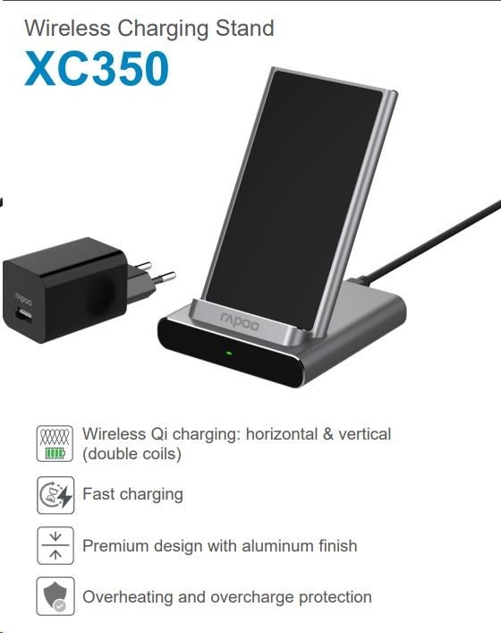 RAPOO nabíjací stojan XC350 Bezdrôtový nabíjací stojan strieborný