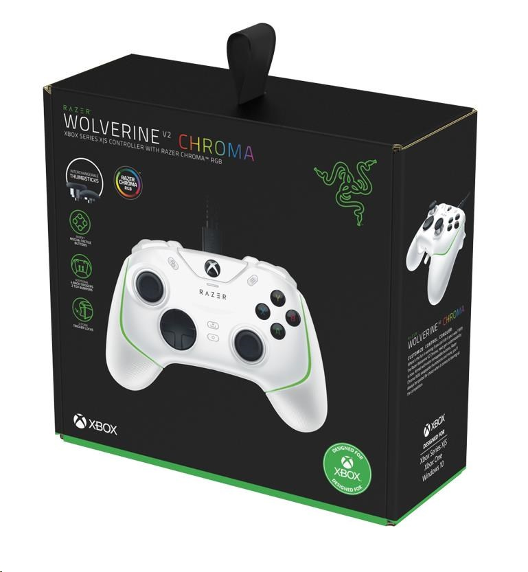 RAZER herní ovladač Wolverine V2 Chroma White, Xbox Series X|S Controller with Razer Chroma™ RGB