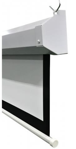 RC motorové plátno MOTOR CrystalLine 400x333cm, viditeľná plocha 4:3, 192"/488cm, 390x293cm, biely hranatý kovový tubus 15x415cm/46kg, uchytenie na stenu alebo strop, materiál BetaLux - biela 0,52 tkanina 600g/m2 s 5cm čiernym okrajom a zadnou stranou, Gain=1,0, pozorovací uhol 150°. Lux - biely matný povrch pre maximálne verný a kontrastný obraz pri aspoň čiastočnom zatmení. PVC materiál sTextilným základom vytvára rovná plochu bez vlneniu ale v okrajoch môže dochádzať k prehnutiu - postupne mizne. Jednoduché uchytenie na stranách plátna - stena alebo strop. Prívodný elektrický kábel je na ľavej strane tubusu (pri pohľade na upevnené plátno). Súčasťou dodávky je RC diaľkový ovládač. Krabička RC prijímača (možné pripevniť na stenu) je na prívodnom sieťovom kábli a na jej boku sú ďalšie tlačidlá na ovládanie plátna.