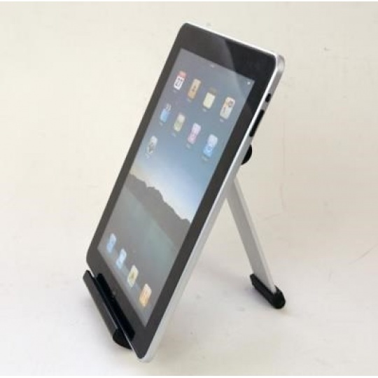 Stojan na 7-11" tablety v horizontálnej a vertikálnej polohe na stole. Plynule nastaviteľný sklon, výklopný mechanizmus na rýchlu inštaláciu, robustná kombinácia hliníka a čierneho plastu, stohovateľný na prepravu, opierka na tablet na spodnej hrane, strieborná/čierna...