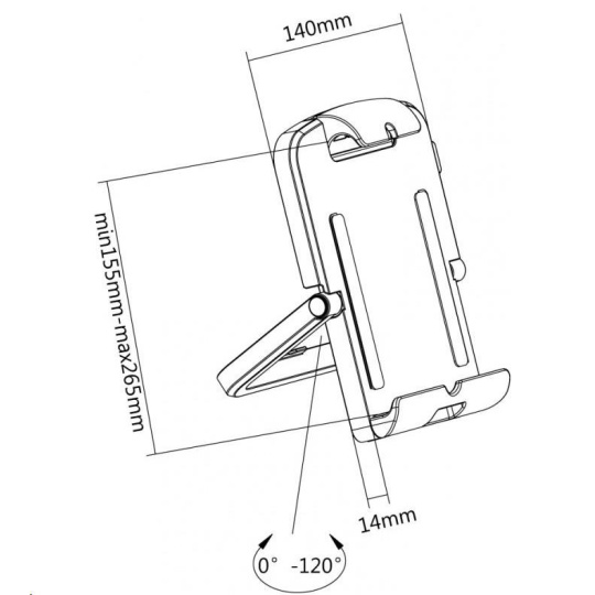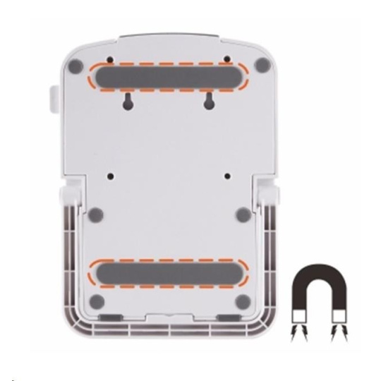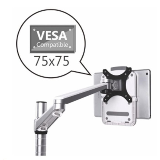 Tenký Slim stojánek pro tablety 7-10,1"/17-26cm max 1kg v horizontální i vertikální poloze na stůl, zeď a pomocí magnetů na kovovou plochu. VESA 75x75, 2x otvory pro uchycení vruty, fixace tabletu ze dvou stran, lehké plastové provedení pro transport, rozměry 19,7x14x3,6cm, šedý / bílý.