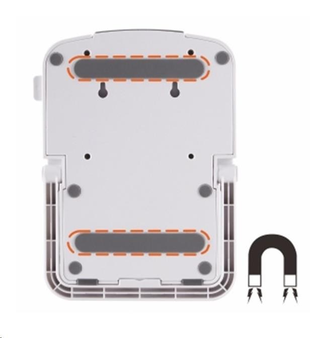 Tenký Slim stojánek pro tablety 7-10,1"/17-26cm max 1kg v horizontální i vertikální poloze na stůl, zeď a pomocí magnetů na kovovou plochu. VESA 75x75, 2x otvory pro uchycení vruty, fixace tabletu ze dvou stran, lehké plastové provedení pro transport, rozměry 19,7x14x3,6cm, šedý / bílý.
