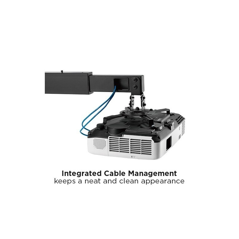 Nástenný držiak na dataprojektory - vzdialenosť od steny 93-152 cm, prístroj je možné otočiť o 360° a nakloniť +/-15°, maximálne zaťaženie 15kg, káblový prechod, čierny. Univerzálny systém upevnenia dataprojektorov (rozsah 5,4-32 cm).