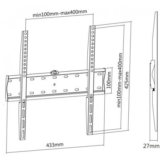Nástěnný ocelový držák SLIM s minimální vzdáleností od stěny na Plasma a LCD TV s uhlopříčkou 32"- 55" (81-140cm) a hmotností maximálně 40kg. Středová konzole na zavěšení TV s upevněnými držáky, není vertikálně výklopný, vzdálenost od stěny 27mm, vodováha, materiál ocel, barva černá. Uchycení VESA: 200x200, 300x300, 400x200, 400x400..