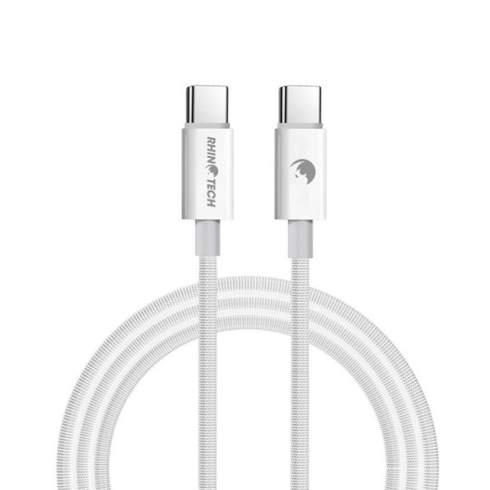 RhinoTech kabel s nylonovým opletem USB-C na USB-C 60W 1M bílá