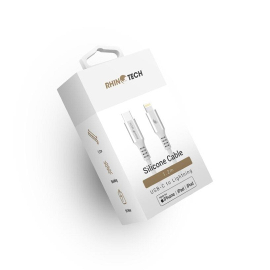 RhinoTech LITE MFi kabel s nylonovým opletem USB-C na Lightning 1.2m stříbrná