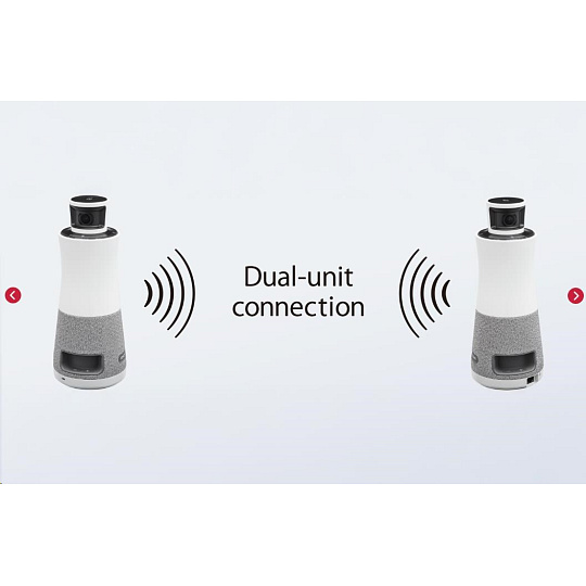 Thanks to its dual fisheye lens, the device can identify up to 8 individual speakers, and highlight the three most recent participants in high-resolution, larger frames. For larger meetings, two units can be connected together. Whilst acoustic echo cancellation and noise reduction ensure all participants can be heard clearly – even in places with background noise.