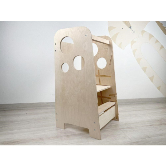 Rostoucí učící věž 3v1 Bublina Max 75 cm, přírodní (natur)