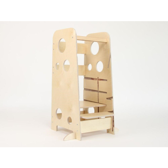 Rostoucí učící věž 3v1 Bublina Max 90 cm se stabilizačními prvky, bezbarvý lak