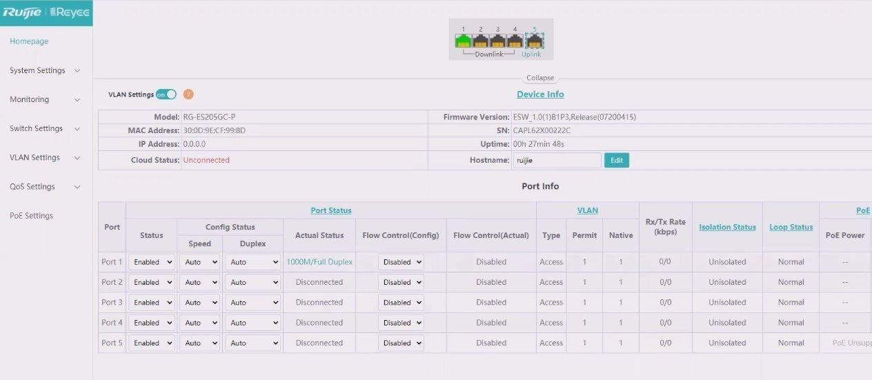 Popis produktu Inteligentní cloudově i přes webové rozhraní spravovatelný smart 19" rackmount switch RG-ES216GC od značky Ruijie, nabízí cenově efektivní řešení s 16 Gigabit LAN porty. Tento kompaktní přepínač je ideální pro síťové aplikace, které vyžadují výkon a spolehlivost. Co se výčtu funkcí týče, switch nabízí tichý chod bez ventilátorů, podporu až 16 VLAN, DHCP snooping, testování kabelu a ochranou proti zakruhování. Klíčové vlastnosti • 16× 10/100/1000 Mbps LAN porty • Kvalitní provedení, kovové šasi, 19" rackmount provedení • Bez venilátoru • Nízká spotřeba - max. 12 W • Správa přes webové rozhraní a cloud • Celoživotní správa na Ruijie Cloud kdykoli a kdekoli • Rozpoznávání IP kamer - jedinečná hodnota pro CCTV síť • Automatická prevence proti zakruhování Obsah balení • Zařízení • Úchyty do 19" racku • Napájecí kabel Technické parametry Konektory a rozhraní Rychlost LAN:(16) 10/100/1000Mbps Napájení Typ napájení:Ze sítě (230V) Max. spotřeba energie [W]:12 Napájení přes konektor/svorkovnici:230V AC Fyzické charakteristiky Provedení:Rackmount Ventilátory:Bez ventilátoru Šasi:Kovové Tlačítka:Reset Provozní teplota [°C]:0 až 50 Šířka [mm]:440 Výška [mm]:44 Hloubka [mm]:165 Obecné Rychlost přepínání [Gbps]:32 Tabulka MAC adres:8000 Rychlost předávání paketů [Mpps]:23,8 Software Web management:Ano Management:Webové rozhraní, Ruijie cloud Funkce:VLAN, DHCP snooping Výchozí IP adresa:10.44.77.200 Výchozí jméno a heslo:Nastavuje se při prvním spuštění.