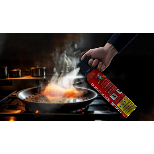 Jeho ovládání je intuitivní a rychlé, podobně jako u běžného spreje. Stačí odstranit červenou bezpečnostní pojistku, přistoupit k ohni na bezpečnou vzdálenost, zamířit rozprašovač na ohnisko požáru a aktivovat sprej stisknutím zelené spouště na hlavici.