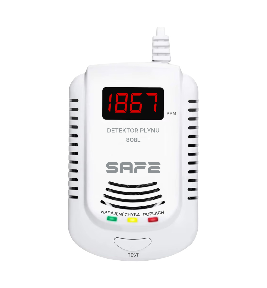 Hlásič plynu SAFE – 808L je ideálny na detekciu úniku plynu zo všetkých domácich plynových spotrebičov a plynových kotlov. Detectuje všetky horľavé plyny bežne sa vyskytujúce v domácnostiach.