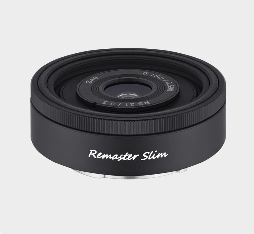 Remaster Slim je nový prelomový modulárny systém objektívov, ktorý umožňuje používateľom prepínať medzi tromi ohniskovými vzdialenosťami - 21 mm, 28 mm a 32 mm - pomocou jediného modulu objektívu, čo je svetový rekord v technológii optického výmenného automatického zaostrovania.