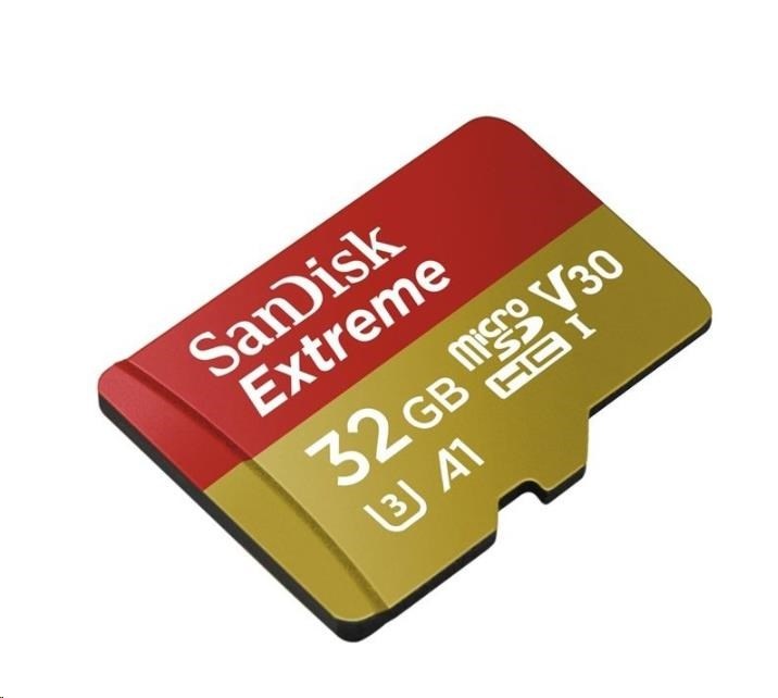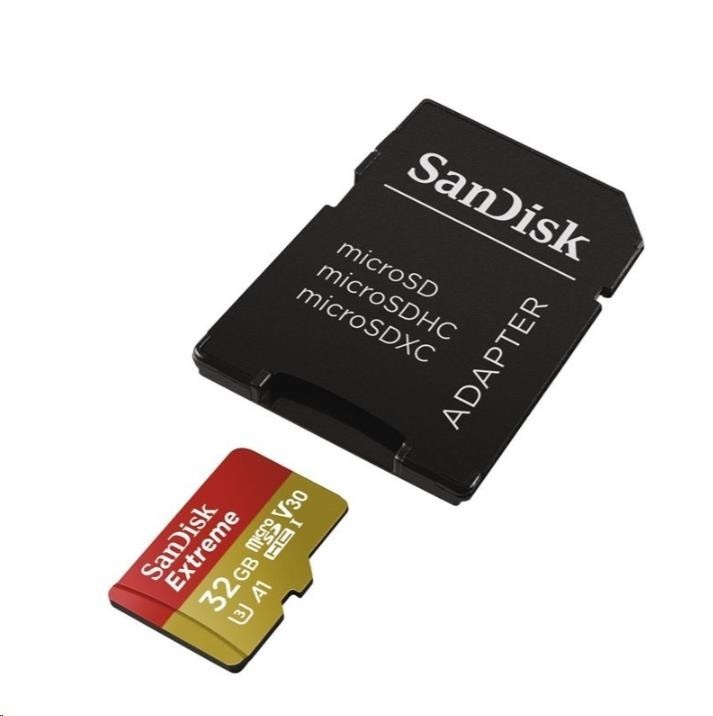 Karta SanDisk MicroSDHC 32GB Extreme (100MB/s, Class 10, UHS-I U3 V30) + adaptér