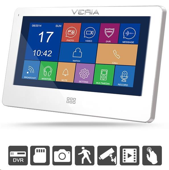 VERIA 7077 ponúka svojmu používateľovi komfortnú kombináciu videotelefonu a jednoduchého DVR monitorovacieho systému s možnosťou zachytenia snímku alebo video záznamu využívajúceho napríklad tak sofistikované funkcie, ako je detekcia pohybu alebo podpora pripojenia externých CCTV kamier na sledovanie okolia.