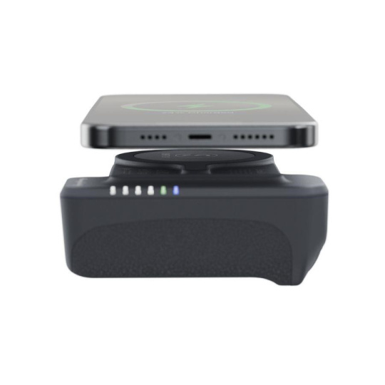 SnapGrip Pro je vybavený výrazne vylepšenou batériou s kapacitou 5000 mAh, ktorá poskytuje 20W PD výstup pre rýchlejšie a efektívnejšie nabíjanie. V praxi to znamená, že s týmito parameter bude vaša výdrž až o 60 % dlhšia, než akú ponúkala prvá generácia ShiftCam SnapGripov. Dovolí vám to natáčať až 1,6-násobne viac videí, hodiny streamovať svoje obľúbené relácie alebo plne prežiť celý deň plný dobrodružstiev. Podpora káblového PD nabíjania navyše prináša možnosť nabiť 50 % batérie telefónu za iba 30 minút. Jednoducho, či nabíjate iPhone alebo iPad, SnapGrip Pro vám vydrží podstatne dlhšie. Samotný grip môžete nabíjať klasicky pomocou USB-C kábla, nabíjací port je na spodnej strane. Po jeho stranách sa nachádza niekoľko malých LED diód, ktoré indikujú úroveň zostávajúcej batérie a aktívne Bluetooth spojenie.