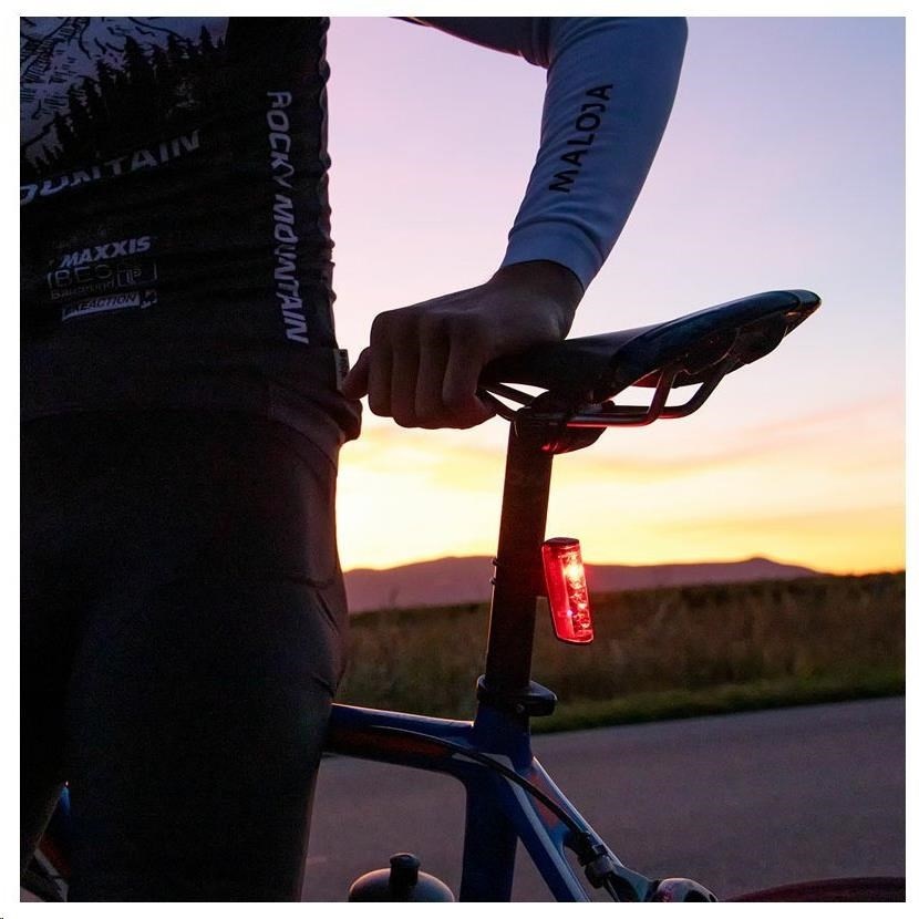 Zadné svetlo Blaze je vybavené funkciou brzdového svetla, ktoré spolu s integrovaným čidlom intenzity osvetlenia prináša jazdcom viac bezpečnosti a komfortu. Tri silné LED diódy, dlhá doba svietenia a priaznivá cena robia zo štíhleho a ľahkého zadného svetla Blaze nepostrádateľného sprievodcu najmä pre cyklistov dojíždajúcich denne do práce na bicykli alebo športových jazdcov.