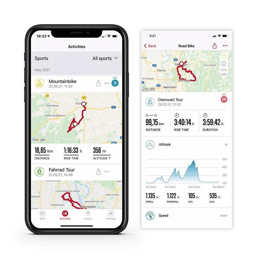 Na ROX 11.1 EVO sú už nainštalované štyri profily, avšak môže ich byť až 20. Môžete si vytvoriť vlastné športové profily a tak využívať svoj ROX 11.1 pre rôzne aktivity. Pomocou aplikácie SIGMA RIDE je možné individuálne konfigurovať a farebne zvýrazňovať šiestich rôznych tréningových obrazoviek až s šiestimi dátovými poliam. Tak budete mať dokonalý prehľad o svojich osobných cieľoch. Ďalšie obrazovky sú nainštalované prostredníctvom appky komoot pre tréning, trasu a navigáciu. Pre chytré trenažéry pripojené cez FE-C je možné načítať ďalšiu dátovú obrazovku. ROX 11.1 je možné prepojiť s chytrým telefónom a sledovať svoje výkony okamžite na Live Screen v aplikácii SIGMA RIDE.