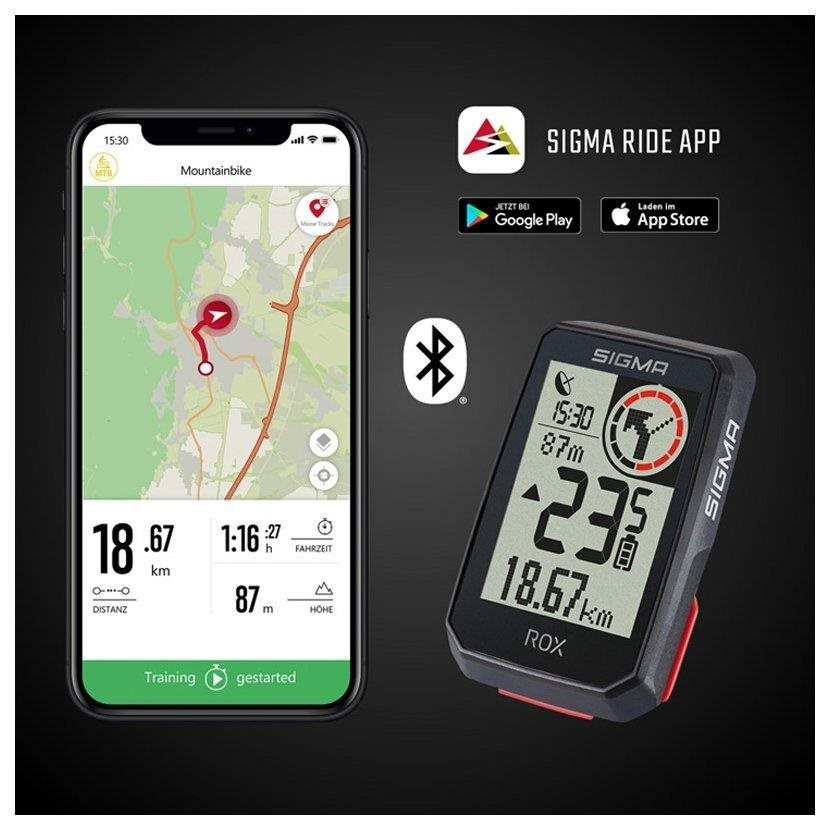 Prostredníctvom Bluetooth je možné odosielať data z cyklopočítača do smartfónu a v aplikácii SIGMA RIDE ich ukladať a vyhodnocovať. Najdôležitejšie údaje a štatistiky je možné prehľadne usporiadať do farebných dátových polí, rýchlo ich zobraziť na displeji a pohodlne vyhodnotiť.