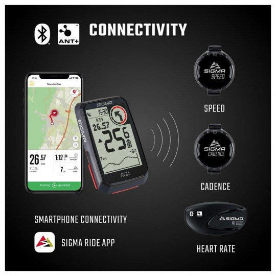 Ak si praje získať ešte ďalšie alebo presnejšie údaje, môže vďaka funkciám ANT+ a Bluetooth pripojiť k ROX 4.0 tiež externé snímače ako sú snímač rýchlosti, kadencie a tepovej frekvencie. Všetky tieto uvedené snímače sú súčasťou balenia.