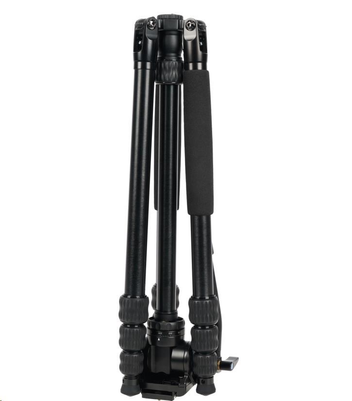 Vďaka osvedčenej funkcii naklonenia nôh o 180° je tento statív v zloženom stave taký kompaktný, že sa zmestí do každého batohu. V zloženom stave meria Traveler VA len 46,5 cm. Guľová hlava je úplne uzavretá.