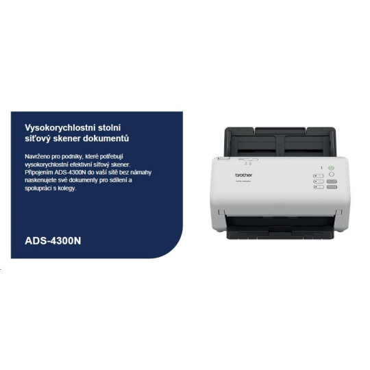 | Obsah kartónu | Brother ADS-4300N, sieťový adaptér, USB 3.0 Kábel rozhrania, príručka rýchleho nastavenia |