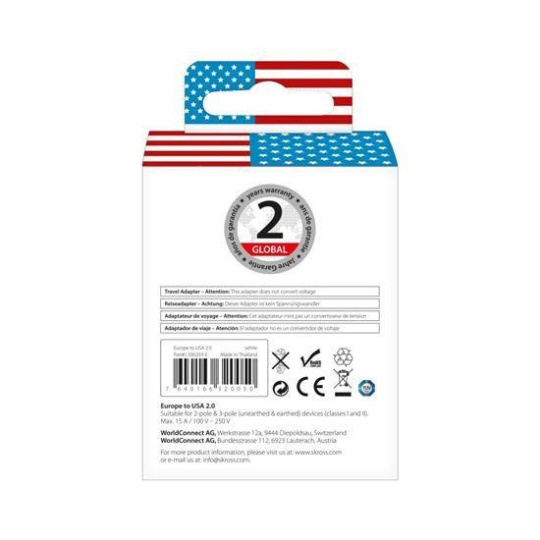 Cestovný adaptér SKROSS na použitie v USA, biely