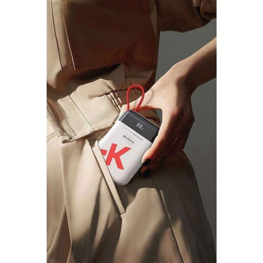 Powerbanka má ergonomický tvar a nízku hmotnosť, čo z nej robí ideálneho spoločníka na cesty. Integrovaný USB-C kábel, ktorý zároveň slúži ako praktické pútko na prenášanie, uľahčuje každodenné používanie. Vďaka displeju máte vždy prehľad o dostupnej Energii a stave nabíjania či dobíjania.