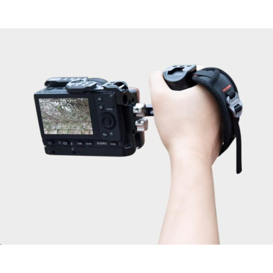 - Universal hand strap, compatible with camera cage and external side handgrip with strap slot on both upper and lower sides and its width not exceeding 12mm.